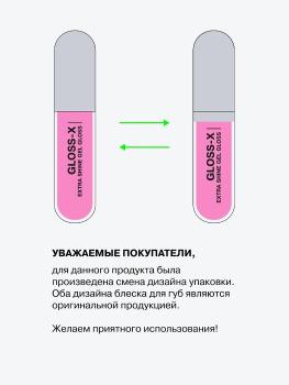 Aýratynlyklary Reňk: №05 HOLO PINK / ПРОЗРАЧНЫЙ С НАСЫЩЕННО-РОЗОВЫМ ПОДТОНОМ Göwrümi: 3.4ml Düşündiriş Gloss-X, dodaklara ajaýyp ýalpyldawuk täsir etmek üçin nemlendiriji Gel bleskdir. “Smart Gel” tehnologiýasy elastik gel gurluşyny üpjün edýär. Formulanyň kömegi bilen "akylly" ýalpyldawuk deriniň üstünde deň paýlanýar, dodaklary gurşap alýar, çatryklary we inçe gyrmalary doldurýar, ýelmeýän duýgysyz ajaýyp ýalpyldawuk täsir döredýär. Futuristik tertipli çüýşede gaplanýar we ajaýyp paýlamak üçin uzyn we ýumşak dykyzlary bar. Ulanyş tertibi Dodak makiýažyny döretmek üçin ulanyň. Aplikator ýa-da çotga bilen çalyň.