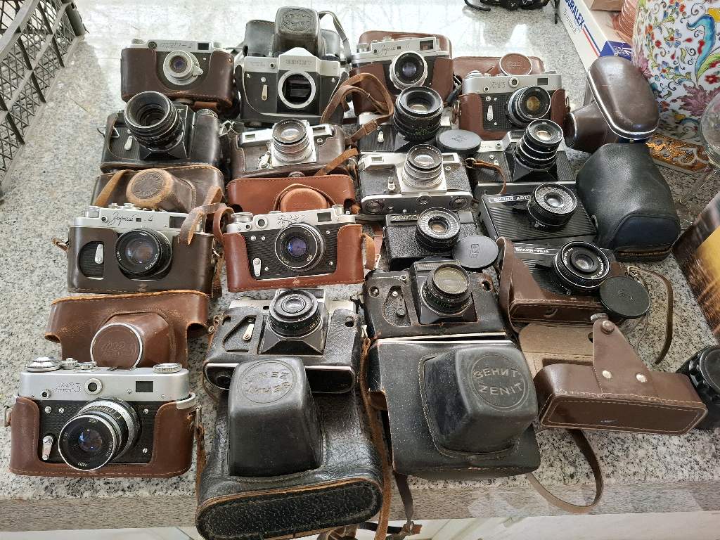 Продам 23 фотоаппарата. СССР: - Юность; - Зенит В; - Киев - по 500 манат; -ФЭД-2(2шт); - ФЭД-3; -ФЭД-4; - ФЭД-5; - Зенит С; - Зенит Е(2шт); - Зенит TTL; - Смена-2; - Зоркий-4; -Зоркий-6 - по 300 ман.; - Смена-8м(5шт): -Смена-Символ; -Агат-18К; -Киев-303 - по 200 манат; - Фотообъективы: -"Индустар-50"; -И23У - по 150 манат; - Фотовспышка "Чайка" - 150 манат; - Фотоэспонометр -"Ленинград-2"(2 шт); - "Ленинград-4"(3 шт) - по 100 манат