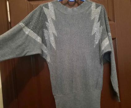 Туника-платье или длинная кофта новое(taze) от фирмы LCWaikiki с камнями теплая, размер S-M-L-XL-XXL тянется цвет серый, длина 90см. Доставка по городу бесплатная