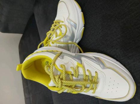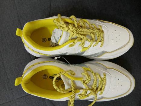 TIME JUMP, белые кроссы с желтой окантовкой, стильные и легкие, р 38