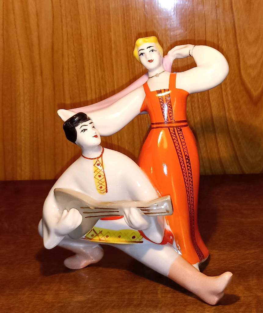 ВИНТАЖ. ОЧЕНЬ СИМПАТИЧНАЯ СТАТУЭТКА СССР "ПЕРЕПЛЯС", "НАРОДНЫЙ ТАНЕЦ"... 1960-70 г.г. АВТОР МОЦАК М.А. ФАРФОР.НАДГЛАЗУРЬНАЯ, ПОЛИХРОМНАЯ РОСПИСЬ, ЗОЛОЧЕНИЕ в ИДЕАЛЕ !!! В ИДЕАЛЬНОЙ, КОЛЛЕКЦИОНОЙ СОХРАННОСТИ !!! Цена ДОГОВОРНАЯ.