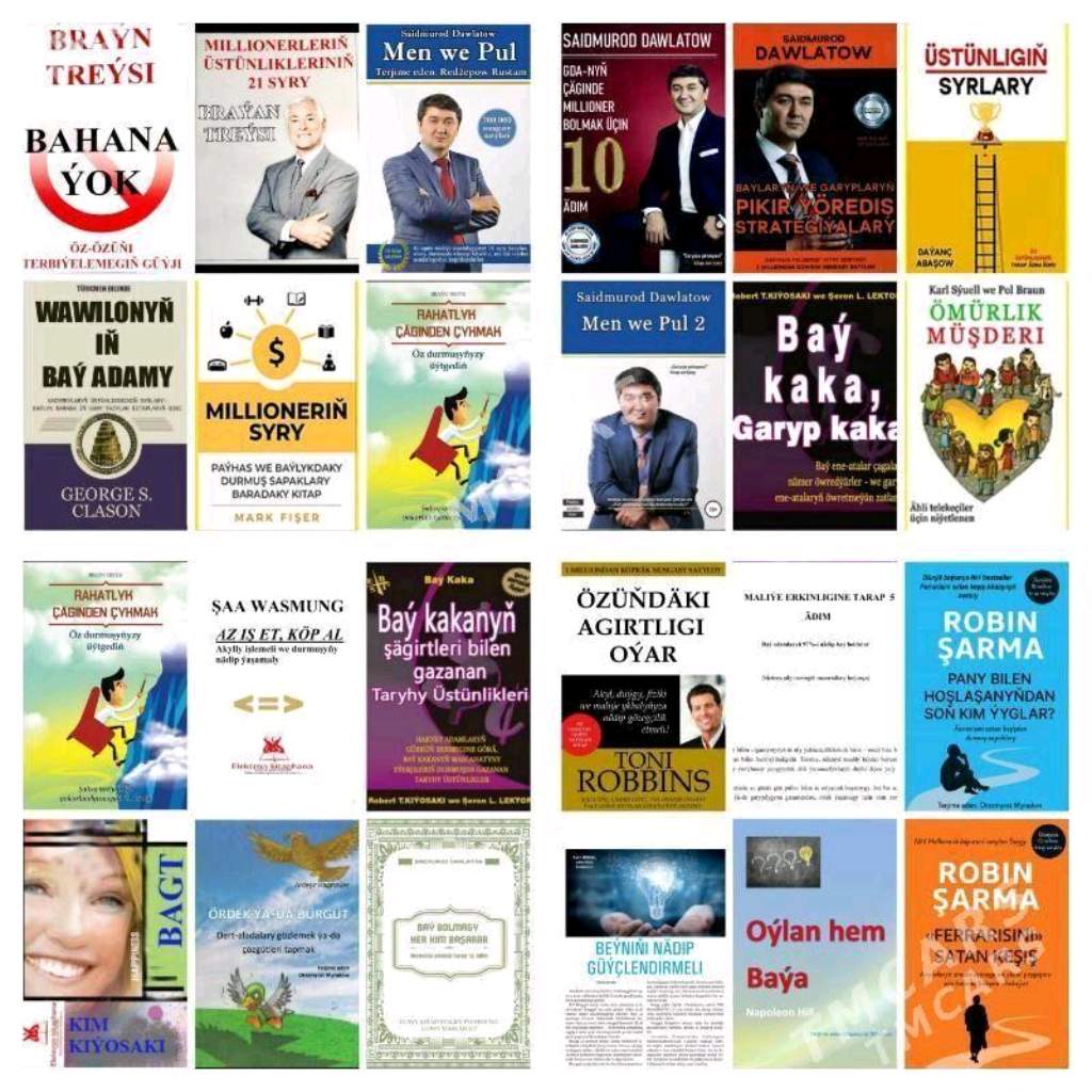 📚BİZNES WE ÖSÜŞ KİTAPLAR ✅ 📚 KİTAPLAR PDF GÖRNÜŞİDE 1. "Pul gazanmagyň iň beýik syry"- Jo Witale 2. "Milyoner aklin sırları"- T. Harv Eker 3. "Aninda Milyoner " Mark Fişer 4. "Oýlan hem baýa" Napoleon Hill 5. " Özüňdäki ägirtligi oýar 6. "Az iý saglyk 7. "Baýlaryñ we garyplaryñ pikir ýörediş strategiýalary" S.Dawlotow 8. "Pul akymynyň kwadranty 9. " pikir ýörediş psihologiýasy 10. " Öwrülme" Franz Kafka 11. "Atom pikir ýörediş 12. "Hastalığını sev bilinçalti sırları" V.Sinelnikov 13. "Beýniňi nädip güýçlendirmeli" Pol S.Breg 14. "Büyük düşünmenin büyüsi" D.Schwartz 15. "İçindeki gücün sırrı" Juseph Murphy 16. "Ölçeg Taýagy" O.Myradow 17. " Lukman hekimiň 1-nji tomdan 6-njy toma çenli bar 18. "Gurbagany iýiň pikirleriň dogrulygy gazanmak aňsat 19. "Men we pul (1-2)" S.Dawlotow 20. " Nädip baýamaly