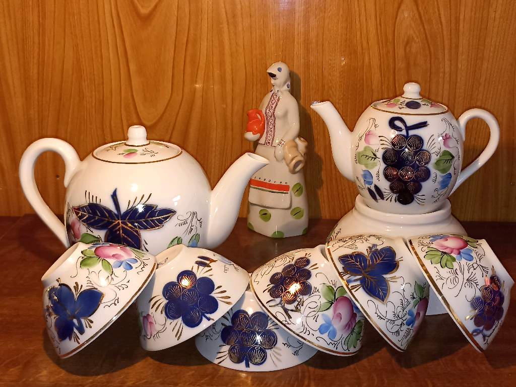 ВИНТАЖ.ШИКАРНЫЙ СЕРВИЗ СССР "ВИНОГРАД". ПЗ ПЕСОЧНОЕ 1968-72г.г. ВИТРИННОЕ ХРАНЕНИЕ. В ИДЕАЛЬНОЙ СОХРАННОСТИ. КАЧЕСТВЕННЫЙ ФАРФОР. КОБАЛЬТ. ЗОЛОЧЕНИЕ !!! РУЧНАЯ РОСПИСЬ. В ПОЛНОЙ КОМПЛЕКТАЦИИ. БОЛЬШОЙ ЧАЙНИК 1,5 Л. МАЛЫЙ ЧАЙНИК 0,5 Л. БОЛЬШОЕ ШАКЯСЕ 1 ШТ. ПИАЛУШКИ -6 ШТ Цена ДОГОВОРНАЯ.
