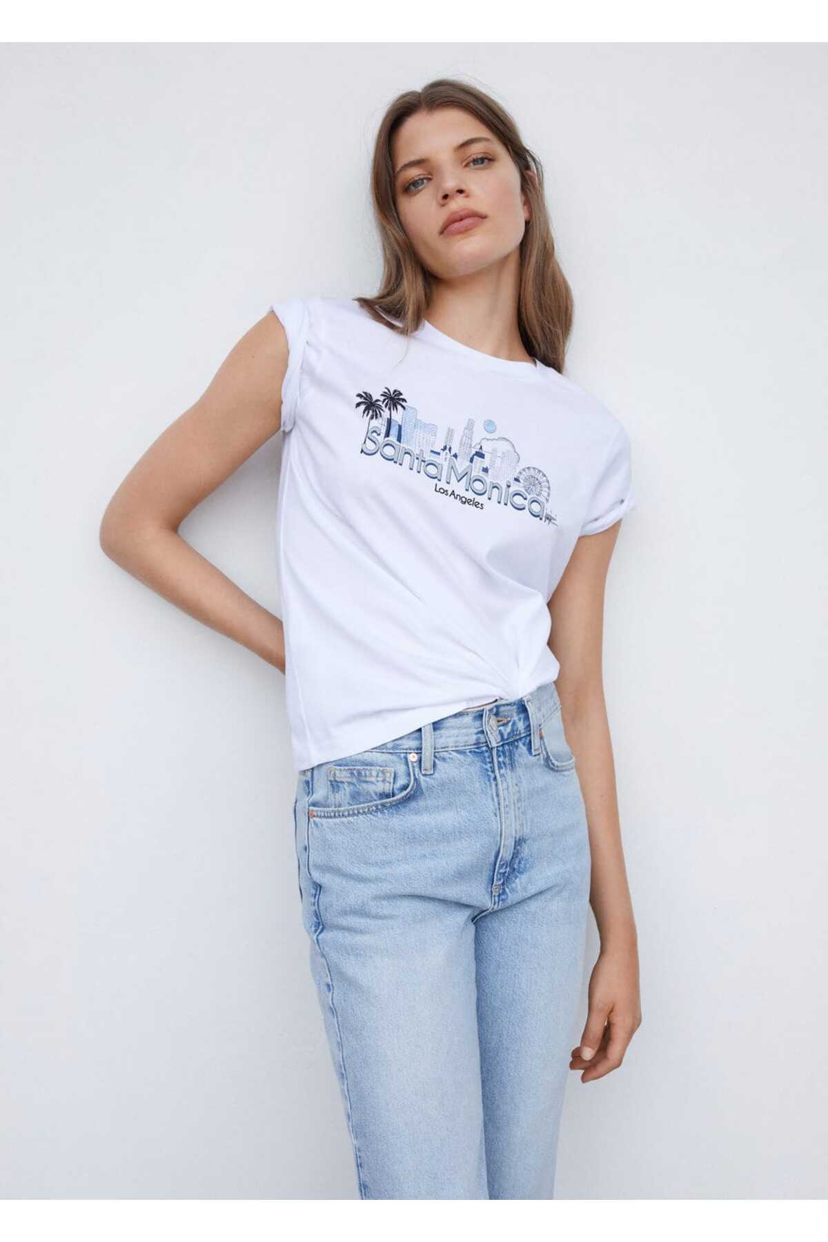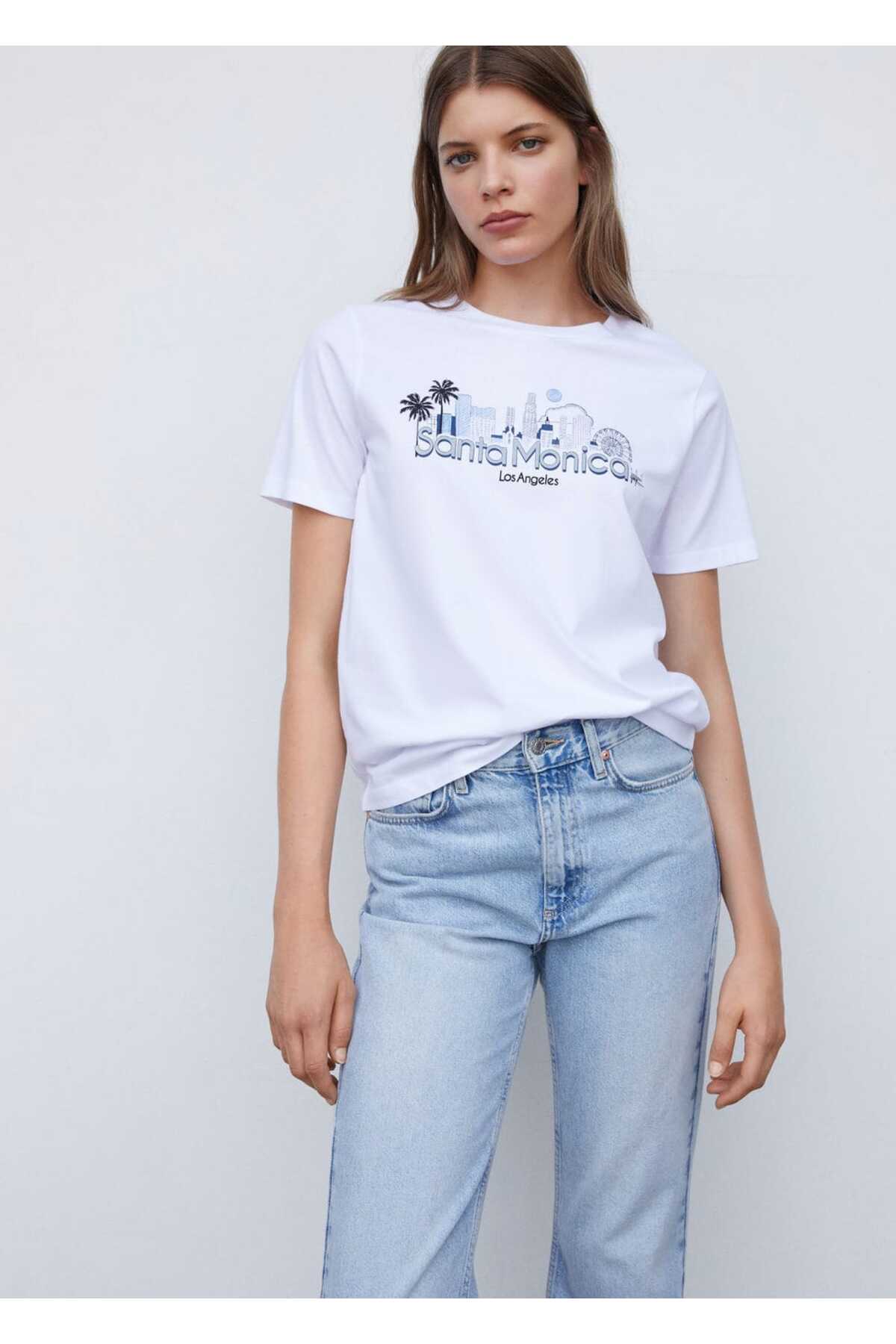 Mango белая женская футболка
