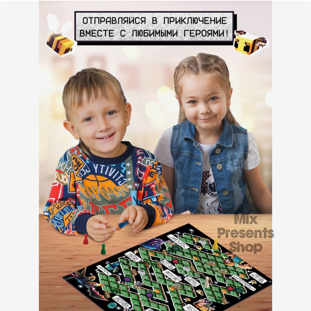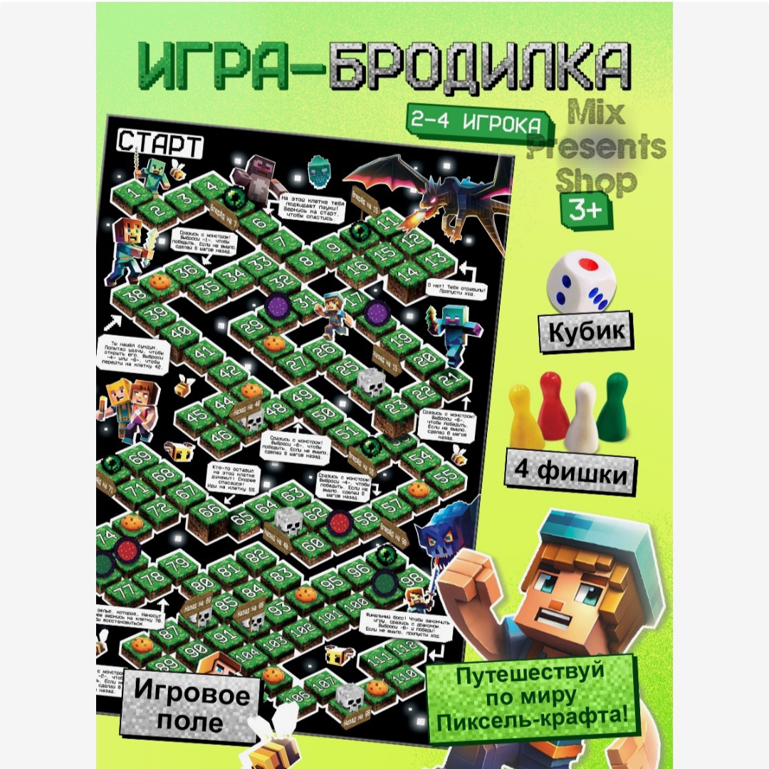 Настольная игра ходилка-бродилка для детей «Пиксель-крафт», 2-4 игрока, 3+