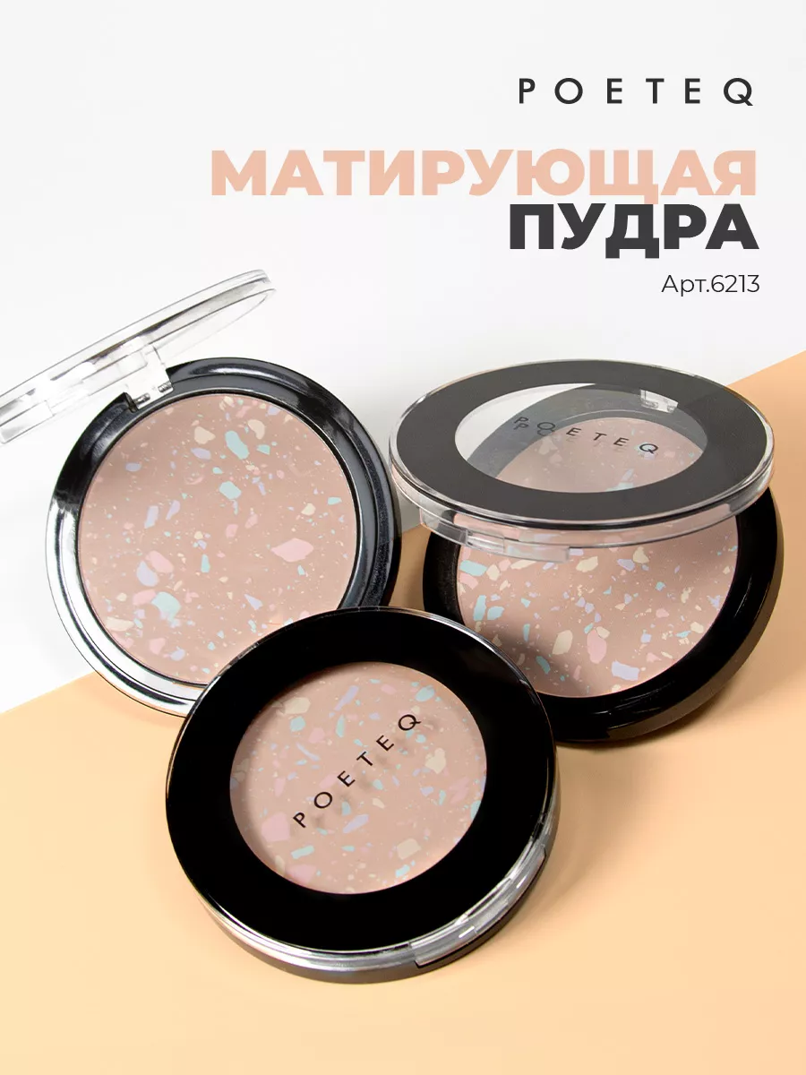 POETEQ Пудра для лица матирующая прозрачная фиксирующая компактная