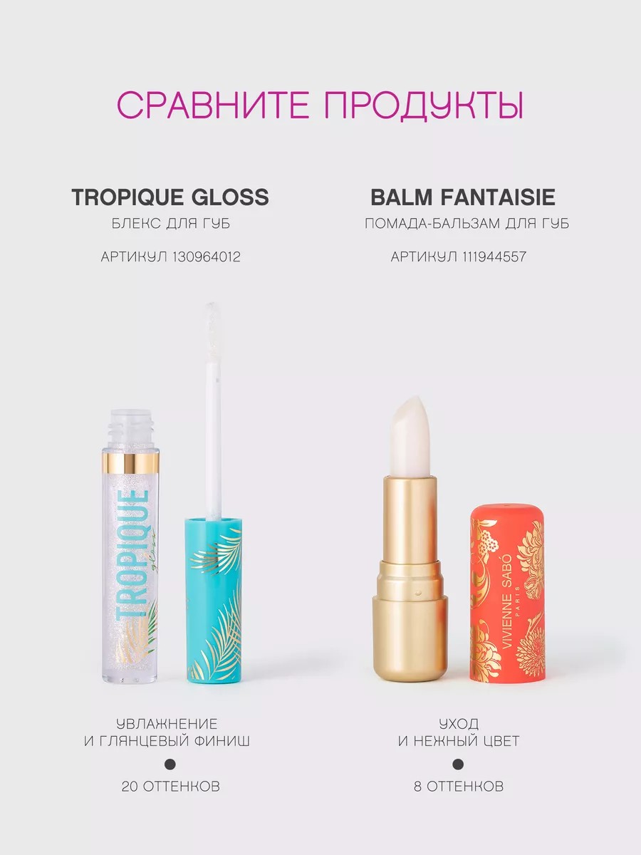Характеристики Цвет: №02 ПРОЗРАЧНЫЙ С СЕРЕБРЯНЫМ ГЛИТТЕРОМ Объем: 3ml Описание Чтобы лето не кончалось, создай образ с блеском из новой линейки Tropique Gloss. Он напомнит тебе об ослепительном солнце, переливах волн, сочных фруктах и тропических ночах. Яркие лаковые оттенки переплетаются с глиттерными сияющими тонами. А для эффектного образа на вечернем променаде мы добавили в палитру утонченные нюдовые цвета - микс из блесков для любого случая. Идеальная текстура Tropique Gloss не оставляет липкости, делает губы гладкими и ровными, придавая объем и выразительность. У каждого блеска из новой линейки сладкий фруктовый аромат. Что выберешь ты - тропический коктейль или сочную мякоть фруктов? Блеск TROPIQUE GLOSS в стильной упаковке с золотыми пальмовыми листьями - лето, которое всегда с тобой! Способ применения Блеск для губ можно использовать как самостоятельный продукт или в паре с карандашом и помадой.