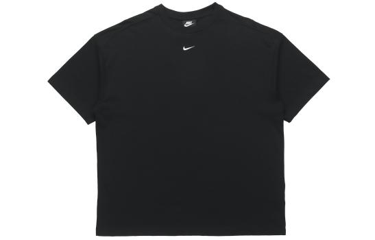 Nike Спортивная одежда Essential American Retro, однотонный пуловер с круглым вырезом и принтом логотипа, свободная футболка с короткими рукавами, женская черная