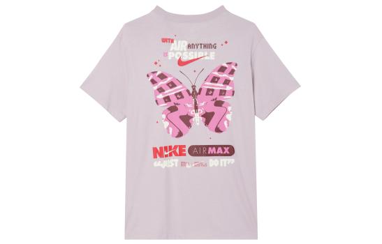 Nike Спортивная буква печатная печь круглая шея повседневная дофамин Американская ретро-ретро-футболка с короткими рукавами для женщин серый фиолетовый