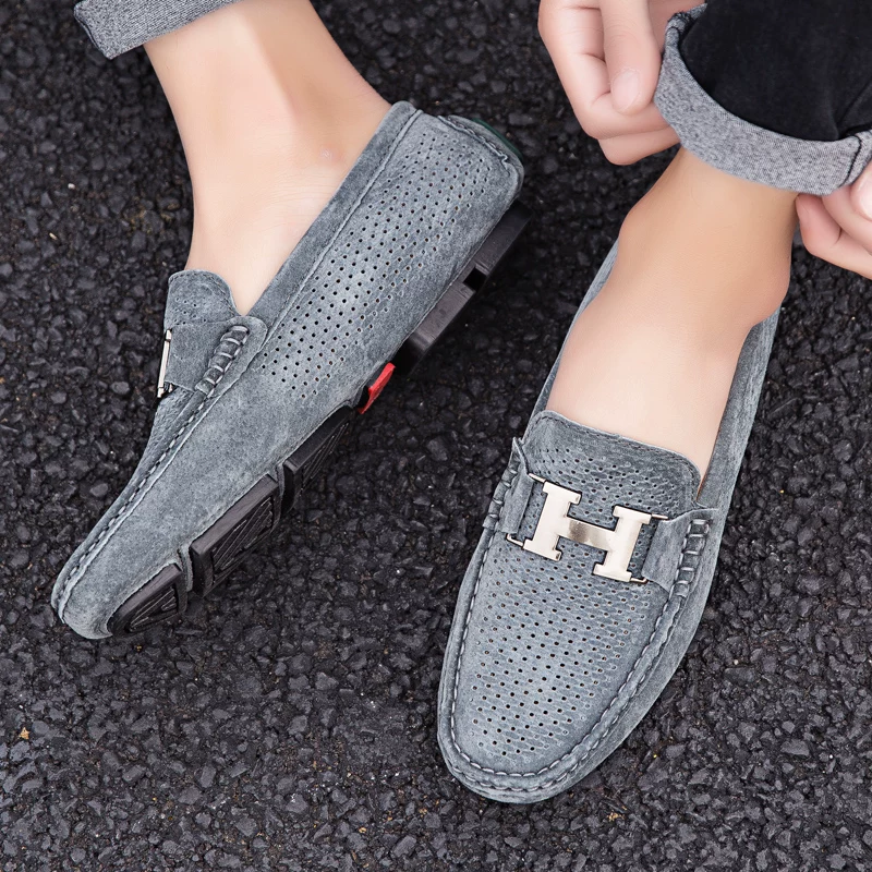2025 летние мужские туфли-шапки из натуральной кожи с мягкой подошвой. Осенние новые универсальные туфли с мягкой подошвой для социальных сетей. Открытая обувь для ленивых. Модные мужские автомобильные туфли.