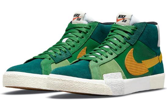 Nike SB Blazer MID MOSAIC парусиновая ткань, двухслойная воловья кожа, мозаика, сломанный крючок, нескользящие, износостойкие и легкие, кроссовки среднего кроя, одинаковый стиль для мужчин и женщин, зеленый и желтый