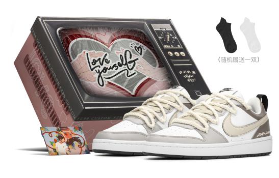 [Кроссовки по индивидуальному заказу] Nike Court Borough FZBB Mocha Milk Coffee Lover's Gift Box в стиле Майяра Противоскользящие износостойкие легкие увеличенные низкие кроссовки GS Khaki Grey