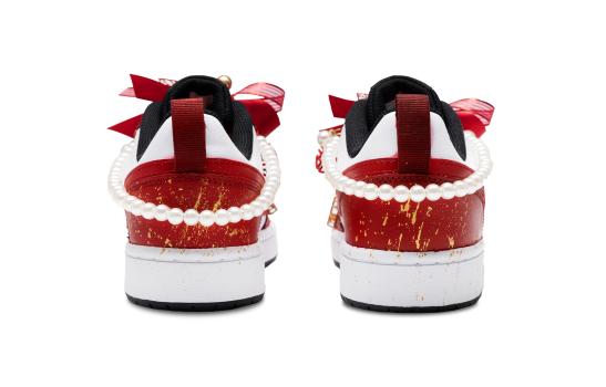 Nike Court Borough Low 2 20 We Are Get Married Xiuhe Wedding Shoes 囍 Китайский стиль с брызгами чернил и жемчужным кулоном Нескользящие амортизирующие износостойкие кроссовки с низким вырезом в женском стиле красного цвета