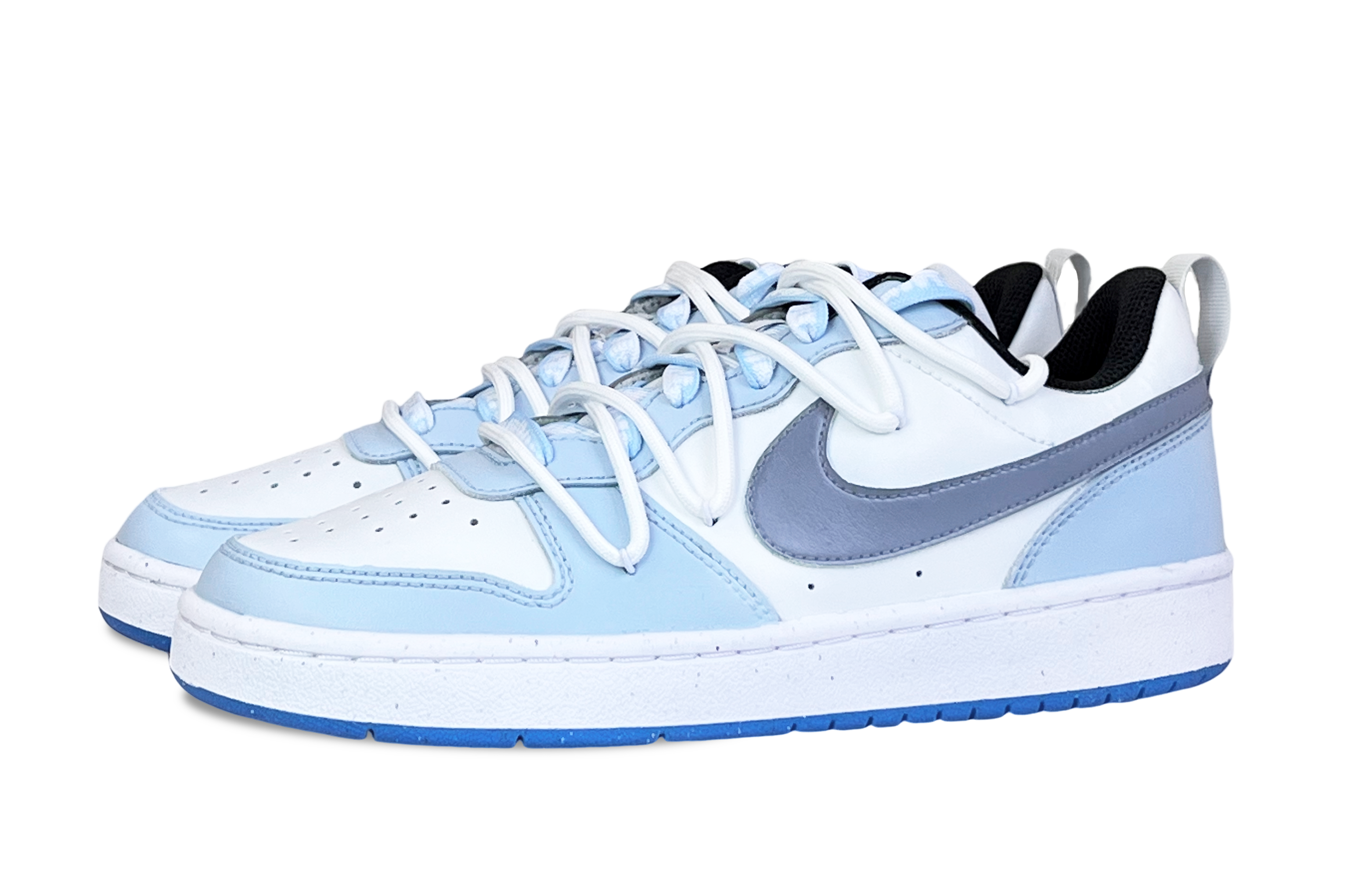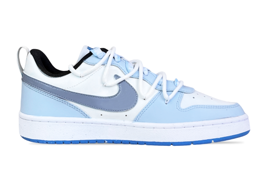 [Кроссовки по индивидуальному заказу] Nike Court Borough Low Haze Forest с двойными ремешками, свежие повседневные и универсальные кроссовки с низким вырезом GS синего и белого цвета.