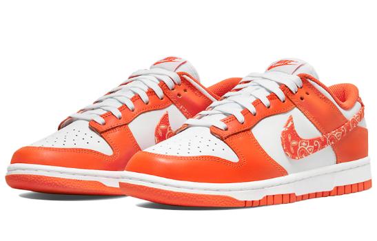 Nike Кроссовки Dunk ESS "Orange Paisley" из парусиновой кожи с низким берцем в виде цветка кешью, женские, бело-оранжевые