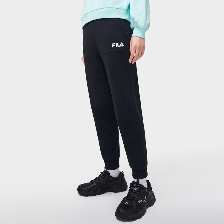 FILA Fila Originale Solid Color Logo логотип закрытые спортивные обычные брюки для женщин, Black