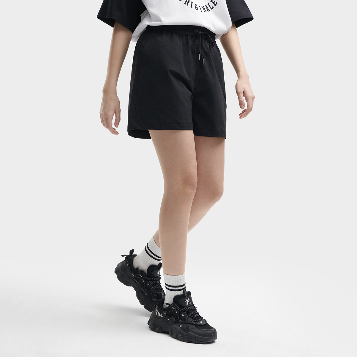 FILA Повседневные тканые шорты серии ORIGINAL, женские, истинного черного цвета