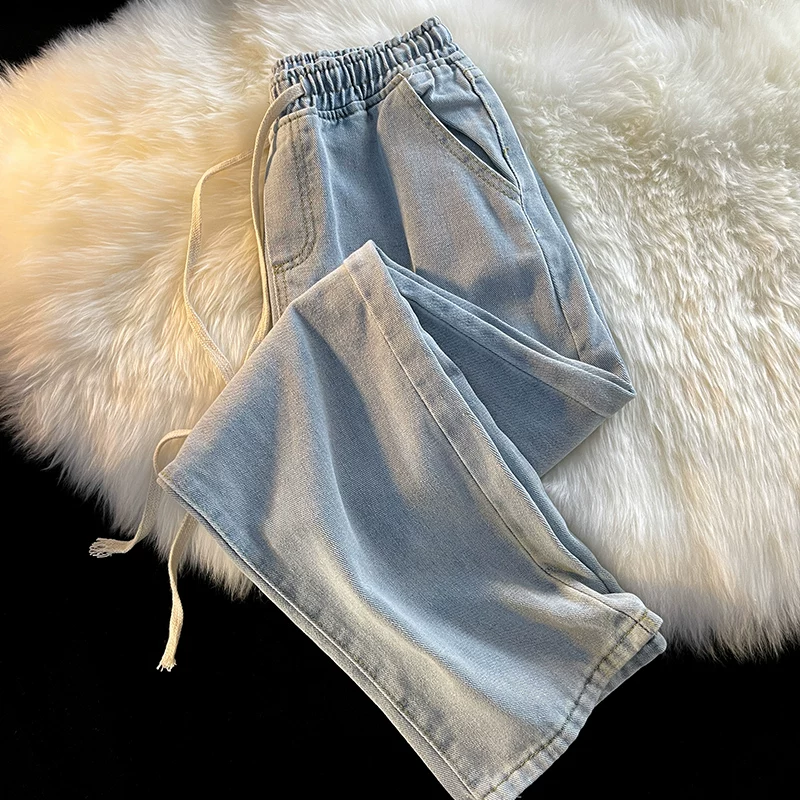 Осенние тонкие трендовые джинсы, штаны для отдыха, эластичная талия, подходит для подростков, свободный прямой крой, оверсайз