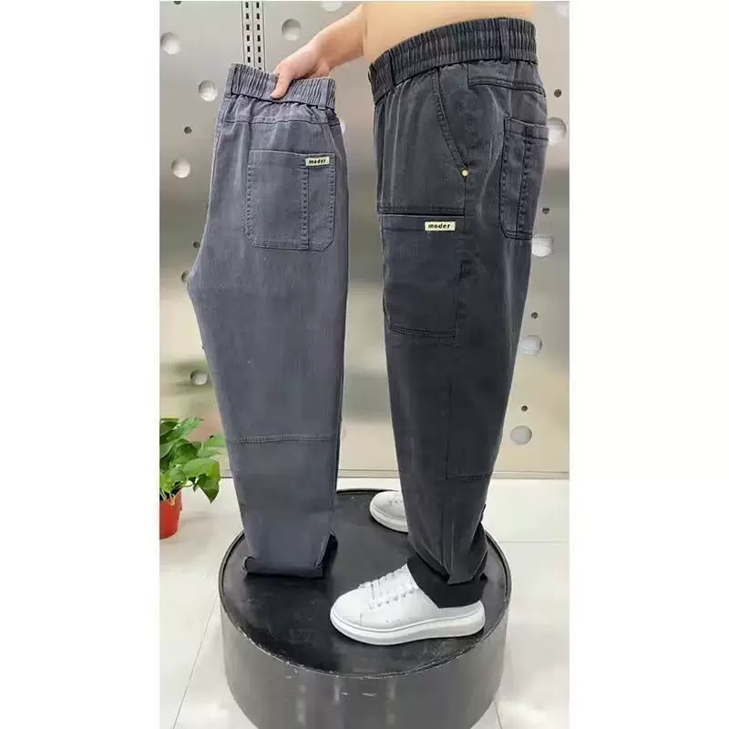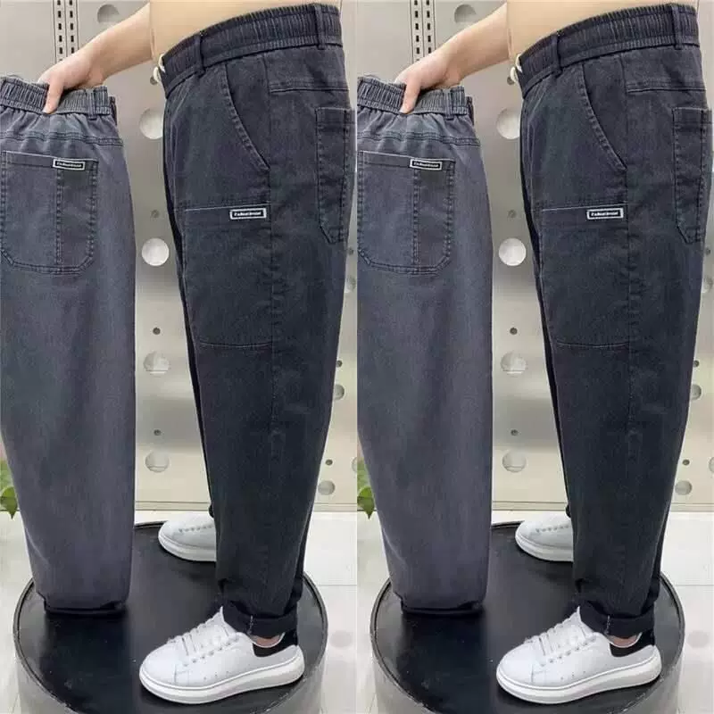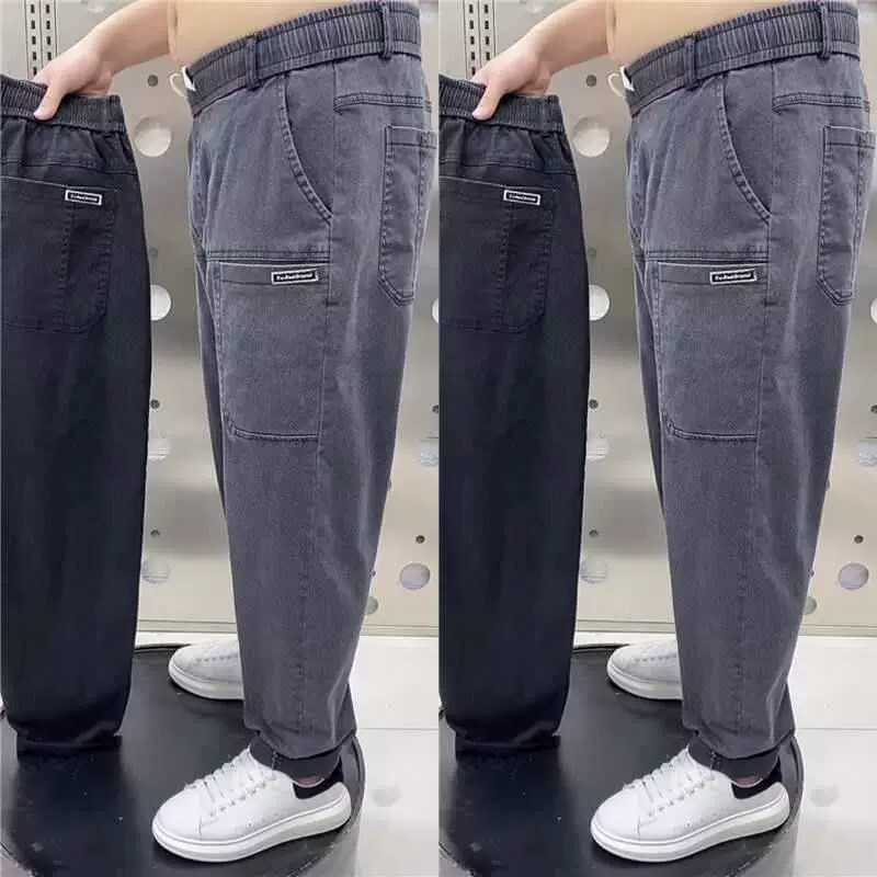 Осенние джинсы, трендовые универсальные эластичные штаны, большой размер, свободный прямой крой