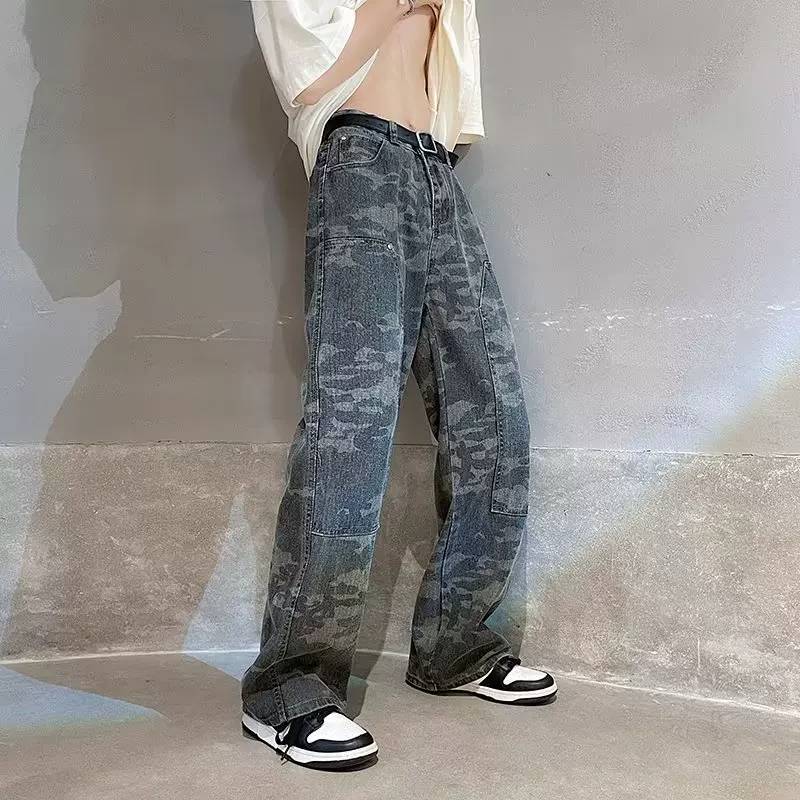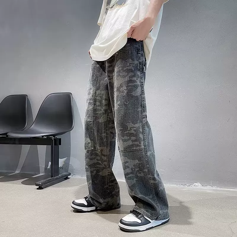 Осенние ретро камуфляжные джинсы, штаны, в американском стиле, оверсайз, высокая талия