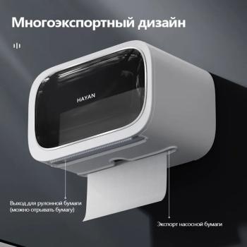 Многофункциональный держатель для туалетной бумаги HAYAN — Порядок и стиль в вашей ванной! Полное описание: Держатель HAYAN — это современное и практичное решение для организации пространства. Благодаря минималистичному дизайну он идеально впишется в любой интерьер — от классики до хай-тека. Изготовленный из высококачественного и ударопрочного ABS-пластика, этот аксессуар устойчив к влаге и коррозии, что делает его незаменимым в ванной комнате или на кухне. Ключевые преимущества: Два способа монтажа: Выбирайте сами — быстрая установка на мощную клейкую основу (без сверления) или классическое крепление на винты для максимальной надежности. Полочка-органайзер: Верхняя плоская платформа позволяет удобно разместить смартфон, освежитель воздуха, влажные салфетки или элементы декора. Высокая нагрузка: Несмотря на компактность, держатель выдерживает вес до 2 кг, что гарантирует устойчивость конструкции. Защита от влаги: Закрытый или полузакрытый тип конструкции (в зависимости от модели) защищает рулон от брызг воды. Способ применения и монтаж (Инструкция): Вариант 1: Установка без сверления (Рекомендуется для гладких поверхностей) Подготовка поверхности: Тщательно очистите и обезжирьте стену (плитку, стекло или металл). Протрите насухо. Подготовка крепления: Снимите защитную пленку с клейкой пластины (идет в комплекте). Фиксация: Плотно прижмите клейкую пластину к стене, выгоняя пузырьки воздуха от центра к краям. Важно: Для максимальной прочности оставьте крепление без нагрузки на 24 часа. Установка корпуса: Наденьте держатель на пазы клейкой пластины до щелчка. Цвет: Белый/ черный
