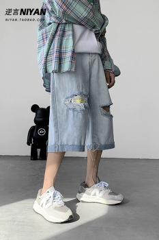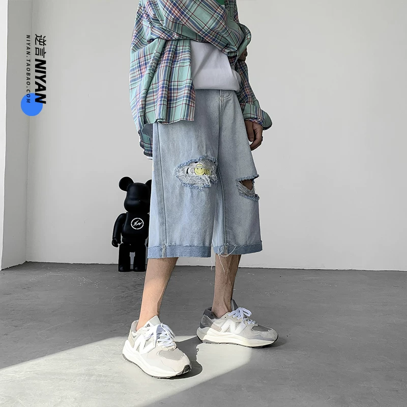 Летние джинсы, шорты, светлые штаны для отдыха, свободный прямой крой