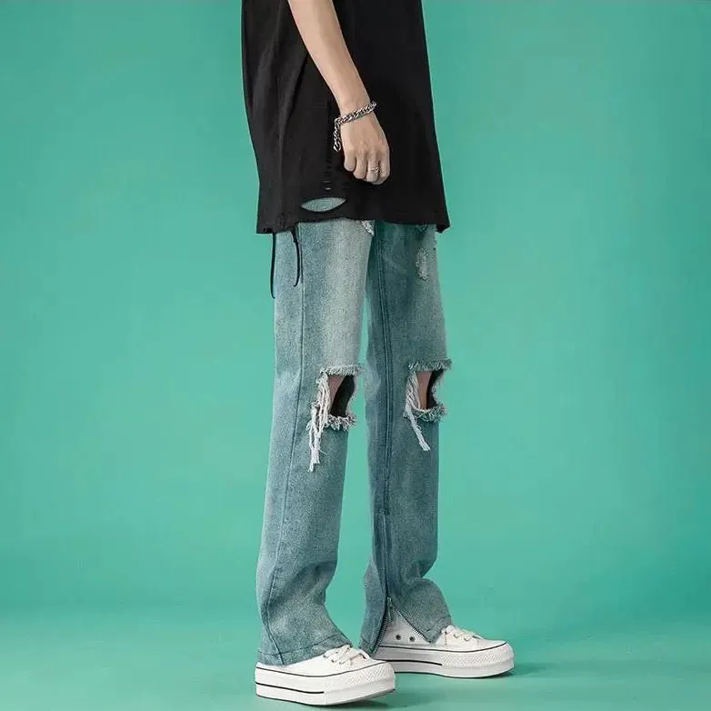 Летние тонкие джинсы в стиле хип-хоп, трендовые штаны с молнией, облегающий крой