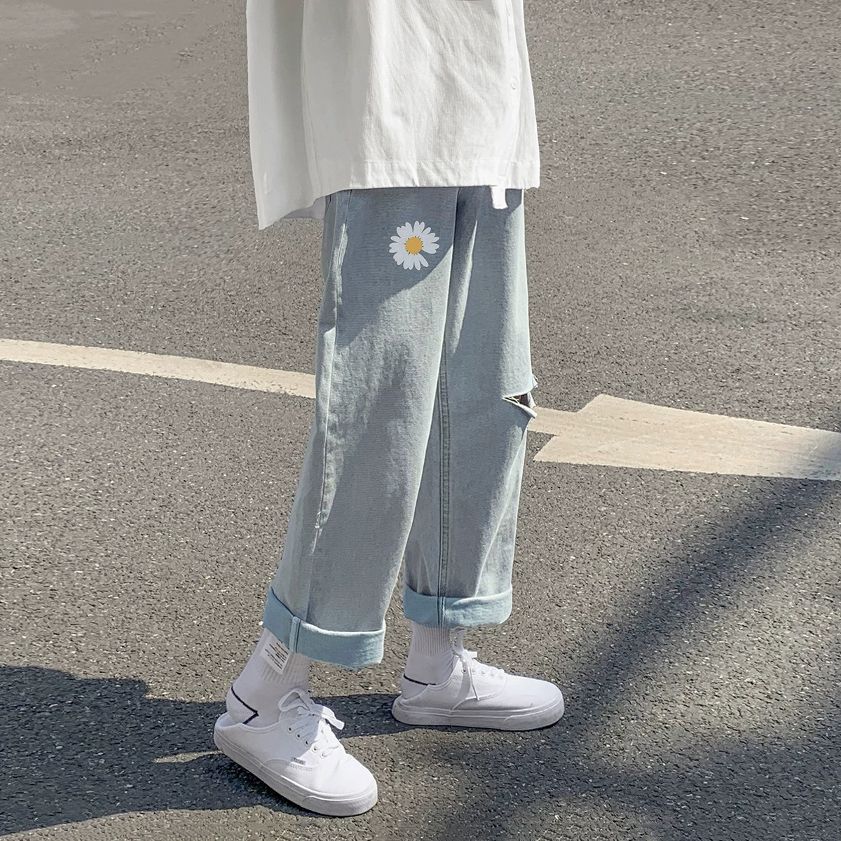 Трендовые джинсы, штаны для отдыха, в корейском стиле, свободный прямой крой