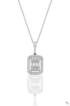 925 Ayar Gümüş Rodyumlu Zirkon Taşlı Baget Taşlı Kolye..Boyut:11X9 Mm Zincir 45 Cm
