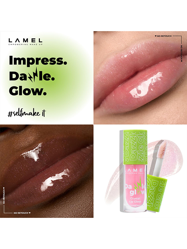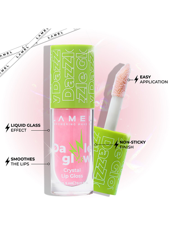 Aýratynlyklary Reňk: №401 BLOSSOM PINK Göwrümi: 5ml Düşündiriş Parlak, gidrasiýa, ajaýyp reňk we ys - Lameliň “Dazzle Glow” Kristal dodak ýalpyldawuklygynyň peýdalary! Çylşyrymly parlak we owadan kölege berýär. Nemlendiriji täsir edýär. Dodaklarda özüni gowy duýýar, ýelmeşip gutarmaýar. Ulanyş tertibi Gerekli mukdarda bleski dodaklaryňyza çalyň we deň paýlaň. Burçlarda gaty köp örtülmezlik üçin bleski merkezden gyralara sürtüň. Iň ýokary täsir etmek üçin merkeze goşa gatlagy çalyň.