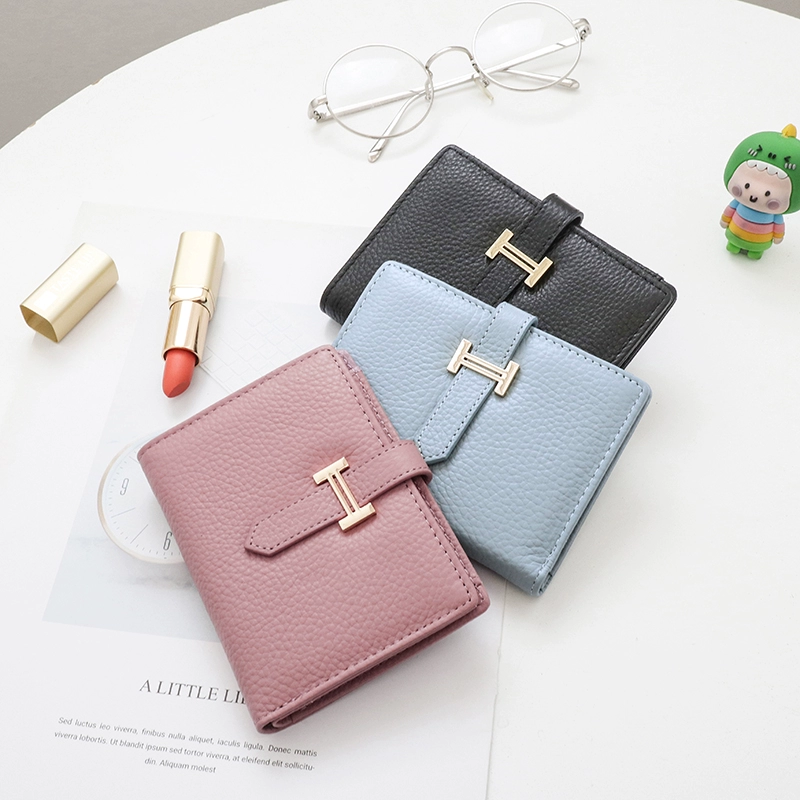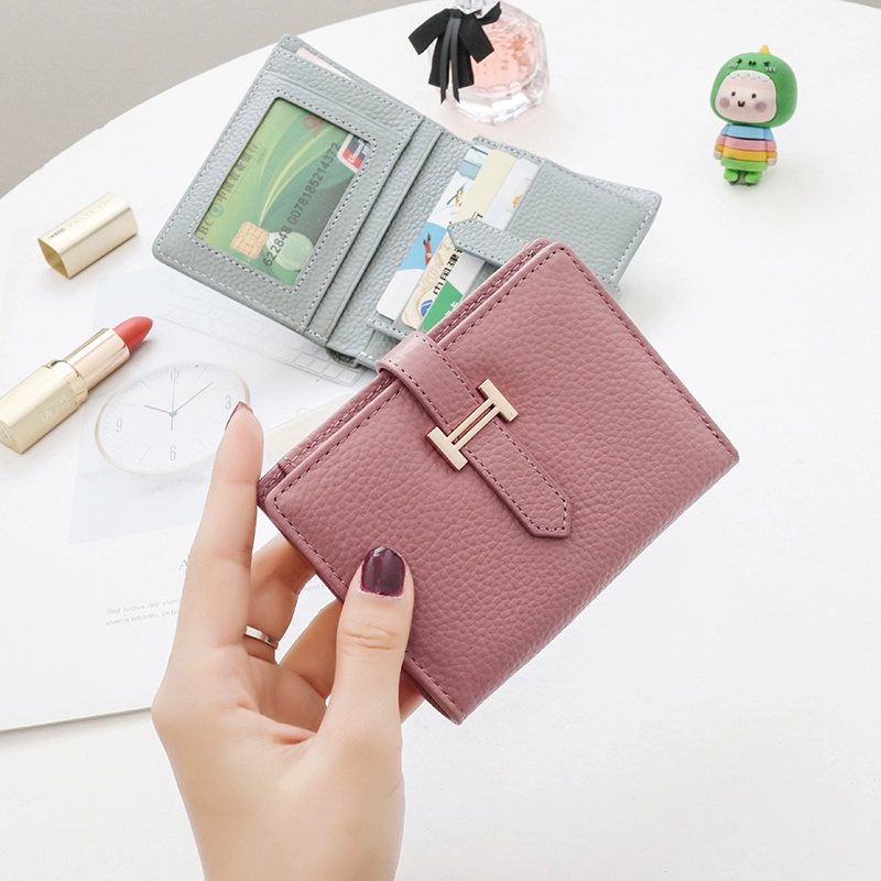 Женский короткий кошелек в европейском и американском стиле, изготовленный из высококачественной коровьей кожи Цвет : розовый (с подарочной коробкой)