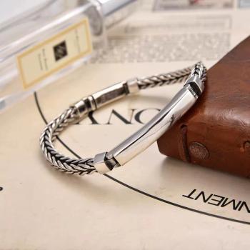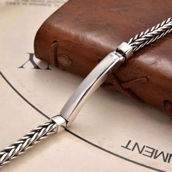Браслет из тайского серебра S925, гладкий, простой, ручной работы Цвет: E252 Длина браслета: 22 см