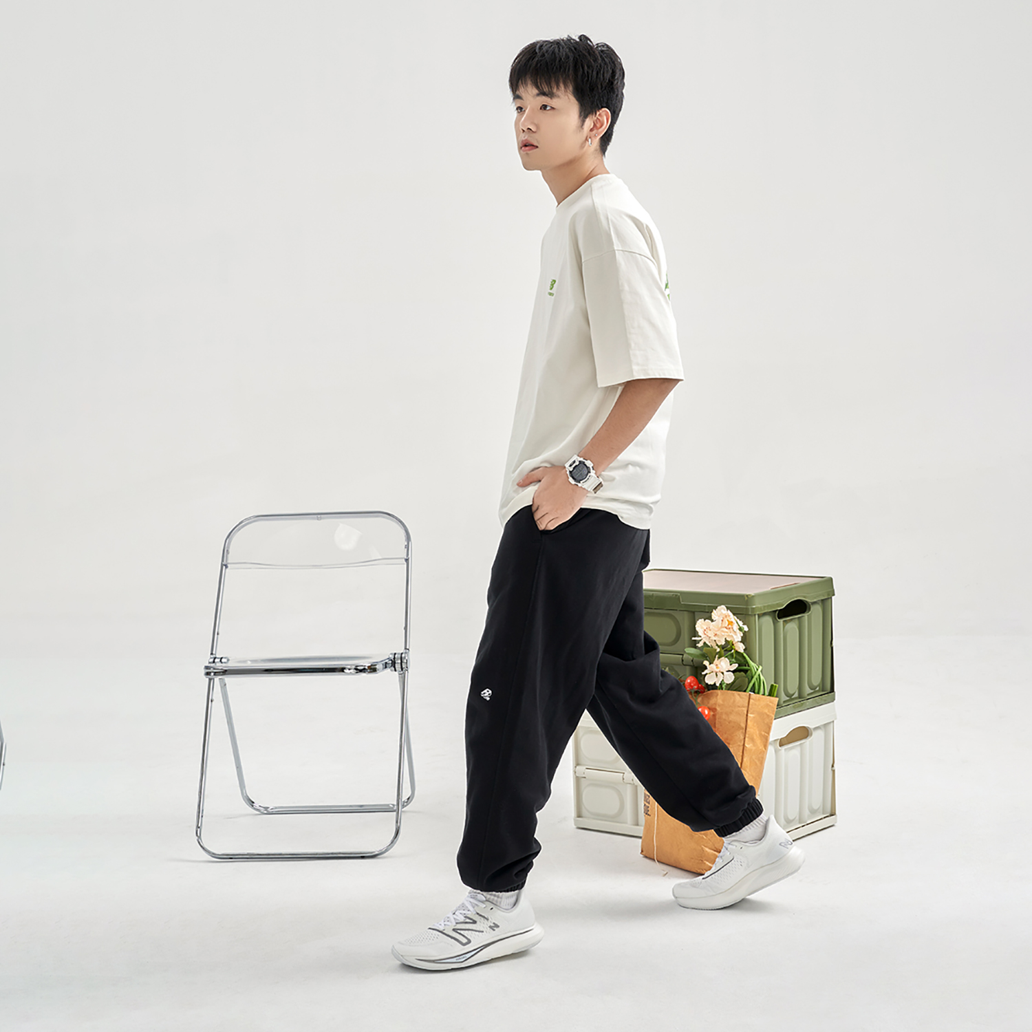 New Balance erkek üçin ýeňil we ykjam deri taýmaýan we çydamly ak reňkli krossowka