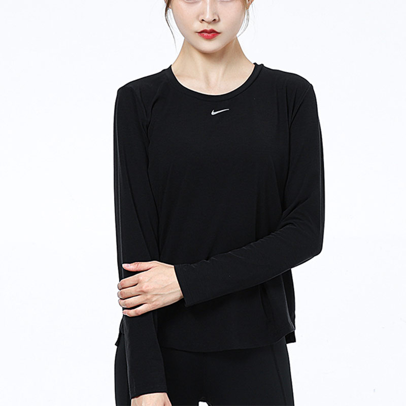 Nike zenan üçin gara reňkli uzyn ýeňli türgenleşik üçin sport futbolka
