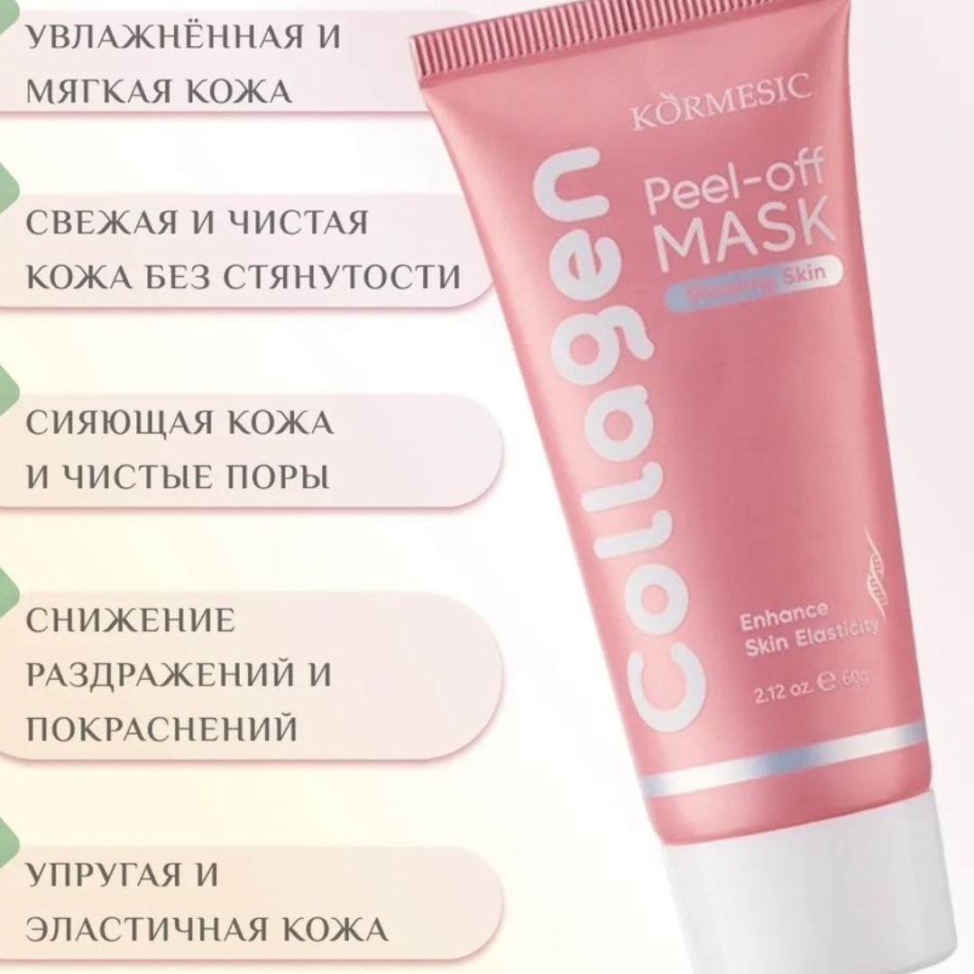 KORMESIC Kollagenli Piling Maskasy, 60 g, derini berkidýär we ýagtylandyrýar, gara nokatlary we siviljäni aýyrýar.